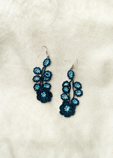 Navy Tatted Blue Beaded Earrings